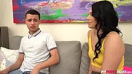 54 Year Old Milf Unwraps a 19 Year Old Boy for Her Birthday Surprise