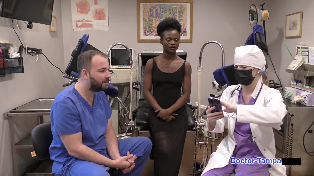 Dr. Tampa, check Ditria Rose's tight pussy during her first gyno exam in Florida.