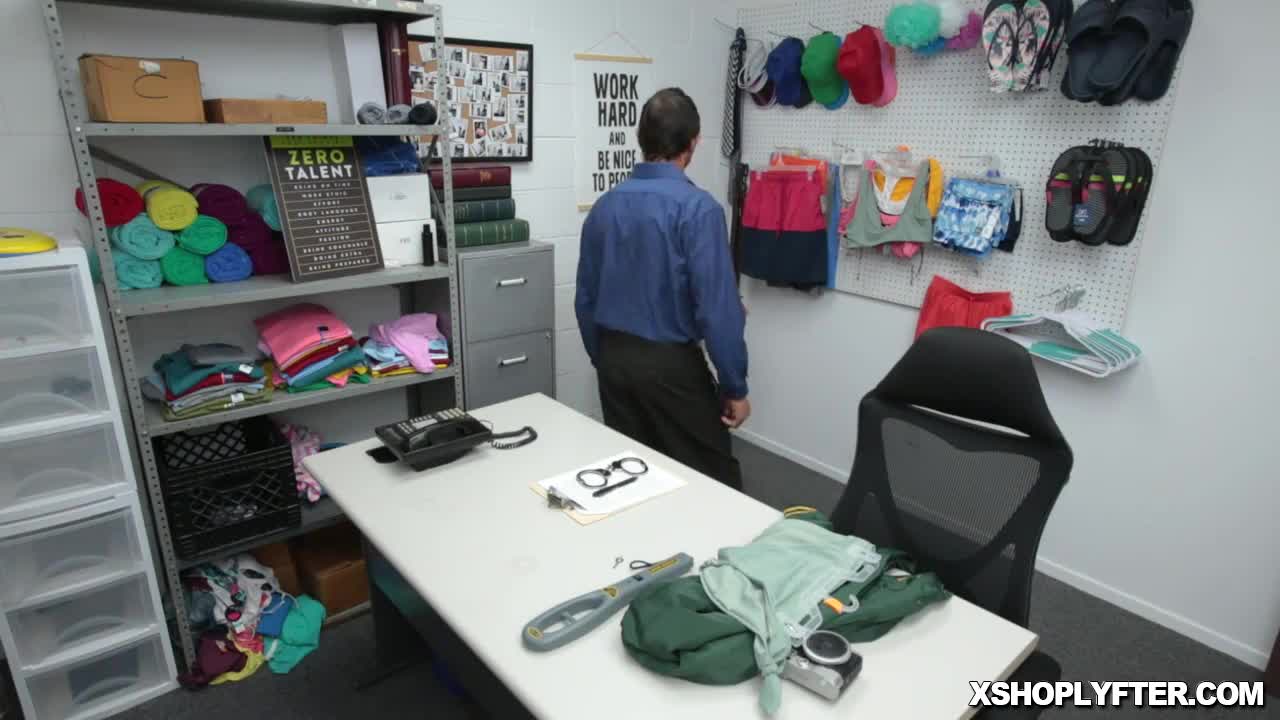 Gorgeous petite teen shoplifter caught and punished by mall guard in garage encounter